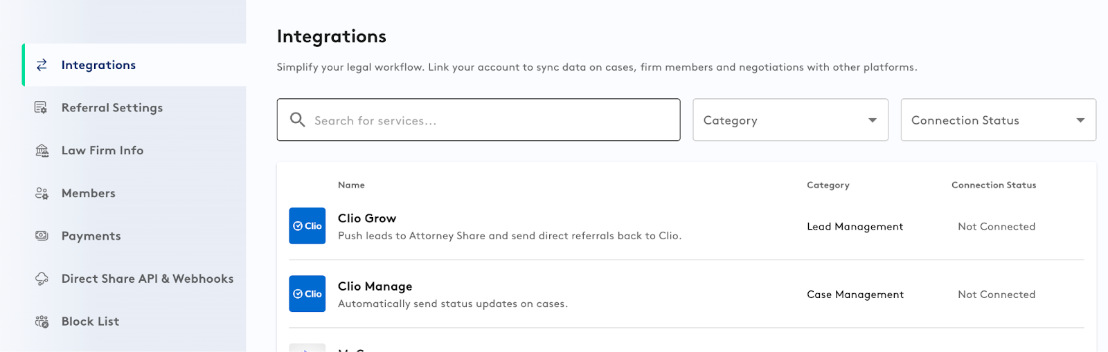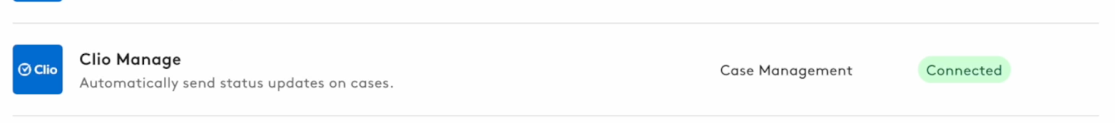 - You can have multiple integrations active at once (e.g., both Clio Grow and Clio Manage)