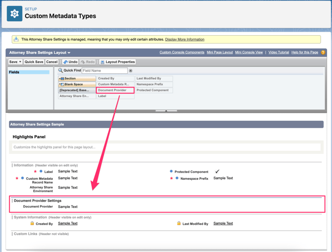 Check if you have a Document Provider Setting section, and if not, create one in the page. Drag the